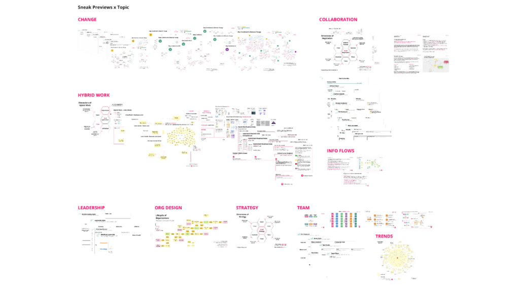 - Change, Collaboration, Hybrid Work, Information Flows, Leadership, Org Design, Strategy, Team and Trends.
